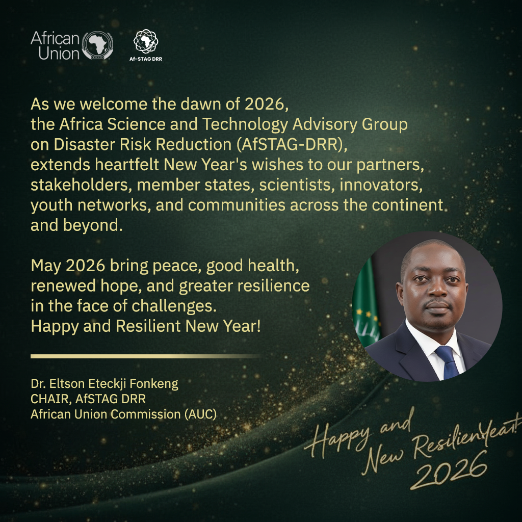 As we close the chapter on 2025 and embrace the opportunities of 2026, I extend, on behalf of the Executive Bureau and the entire membership of AfSTAG DRR, our warmest New Year’s greetings to you, your families, and your organisations.